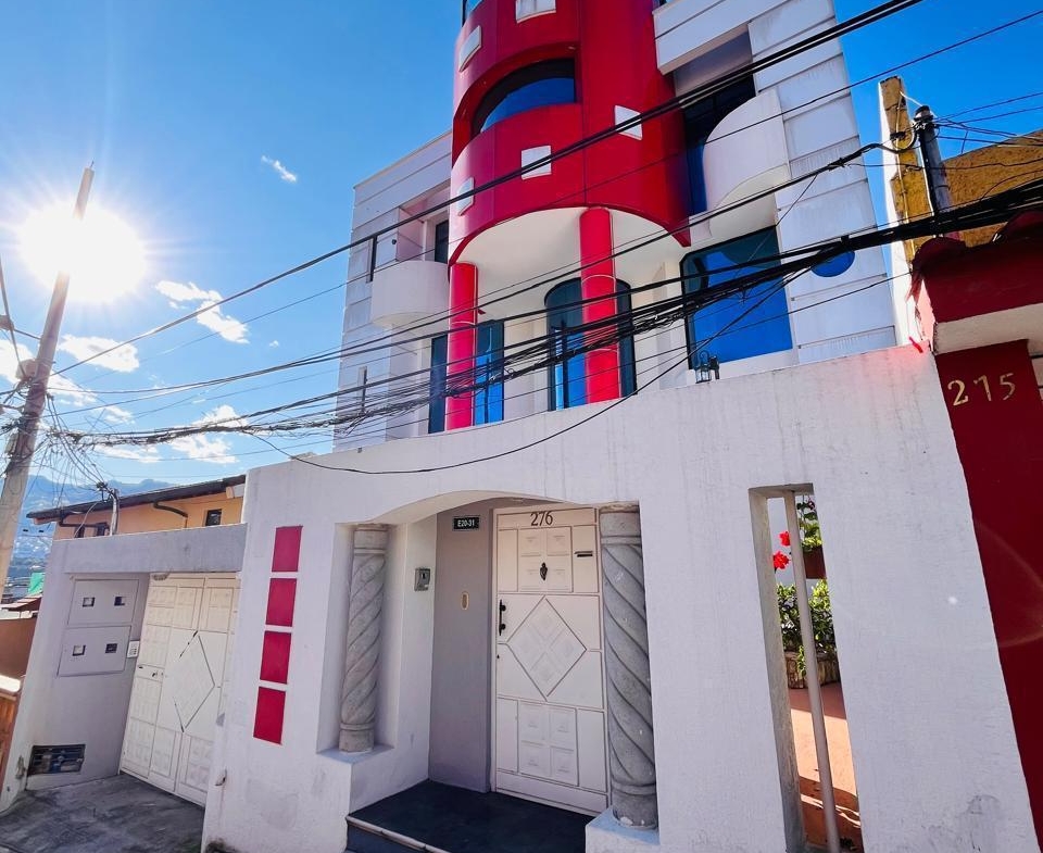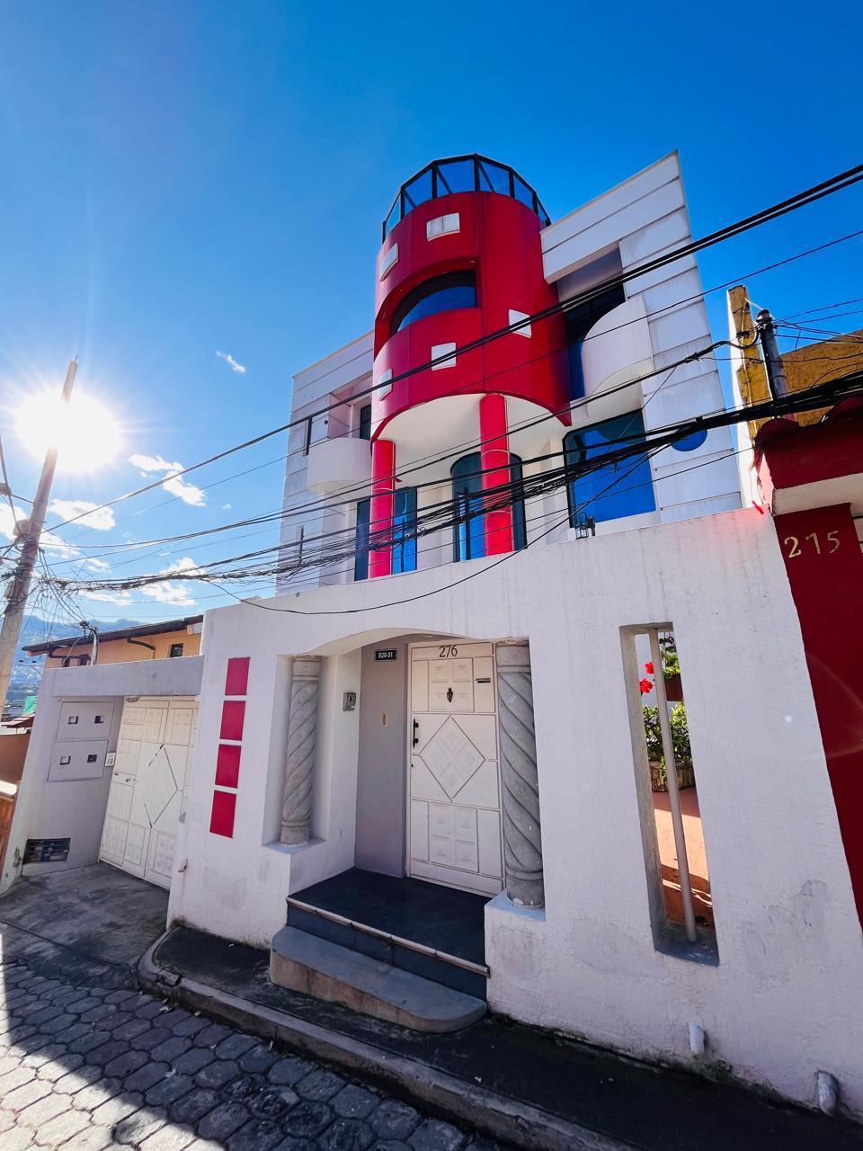 Casa de lujo distribuida en 5 niveles con 4 departamentos, 1 departamentos completamente privado en 3 niveles, la casa incluye dormitorio máster, 3 dormitorios, estudio, cocina, comedor, salas dos ambientes, un bar, 3 bodegas, 1 habitación de servicio con baños completo, acceso a terraza privada cubierta con BBQ y otra descubierta, área de máquinas, 2 estacionamientos y lo mejor la vista de Quito. 3 departamentos con dos habitaciones cada uno para rentar, acceso a vías principales para para el centro de quito, valle de los chillos